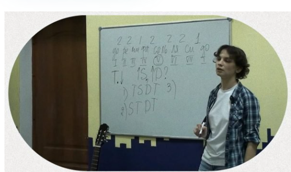 - В течение всего курса занятий — подбор по слуху и анализ. Взяли песню — разбираем и записываем на доске структуру, аккордовую сетку, а потом подбираем и пишем саму мелодию. Подбирать станет легко, в чём-то даже скучно.